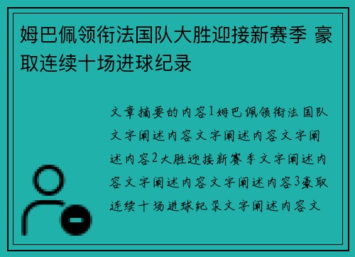 文章摘要的内容1、姆巴佩领衔法国队文字阐述内容文字阐述内容文字阐述内容ng娱乐2、大胜迎接新赛季文字阐述内容文字阐述内容文字阐述内容3、豪取连续十场进球...