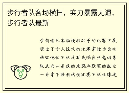 步行者队客场横扫对手的比赛中,展现出了令人惊叹的比赛掌控力。面对强敌,他们不仅没有表现出丝毫的紧张,反而以高效的表现和默契的配合,一举拿下胜利。这场比赛不仅让球迷们看到了步行者队的深厚底蕴,也让人对他...