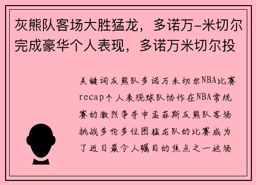 关键词:灰熊队、多诺万-米切尔、NBA、比赛recap、个人表现、球队协作 在NBA常规赛的激烈争夺中,孟菲斯灰熊队客场挑战多伦多位图猛龙队的比赛成为了近日最令人瞩目的焦点之一。这场比赛不仅因为灰熊队...