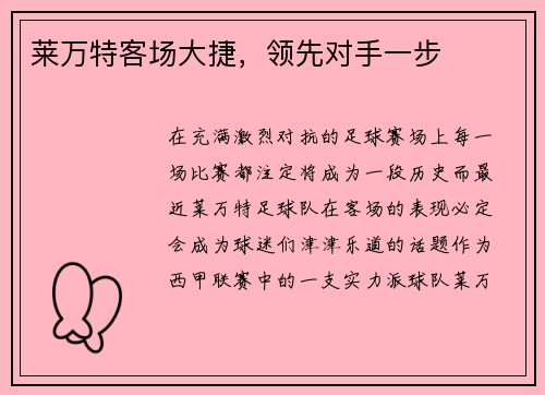 在充满激烈对抗的足球赛场上,每一场比赛都注定将成为一段历史。而最近莱万特足球队在客场的表现,必定会成为球迷们津津乐道的话题。作为西甲联赛中的一支实力派球队,莱万特此次客场大捷,不仅仅是一场普通的胜利,...