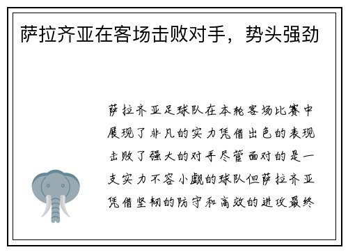 萨拉齐亚足球队在本轮客场比赛中展现了非凡的实力,凭借出色的表现击败了强大的对手。尽管面对的是一支实力不容小觑的球队,但萨拉齐亚凭借坚韧的防守和高效的进攻,最终以2-1的比分赢得了比赛。赛后,球迷们纷纷...