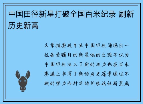 文章摘要:近年来,中国田径涌现出一位备受瞩目的新星,他的出现不仅为中国田径注入了新的活力,也在百米赛道上书写了新的历史篇章。通过不断的努力和科学的训练,这位新星成功打破了中国百米纪录,以惊人的速度刷新...